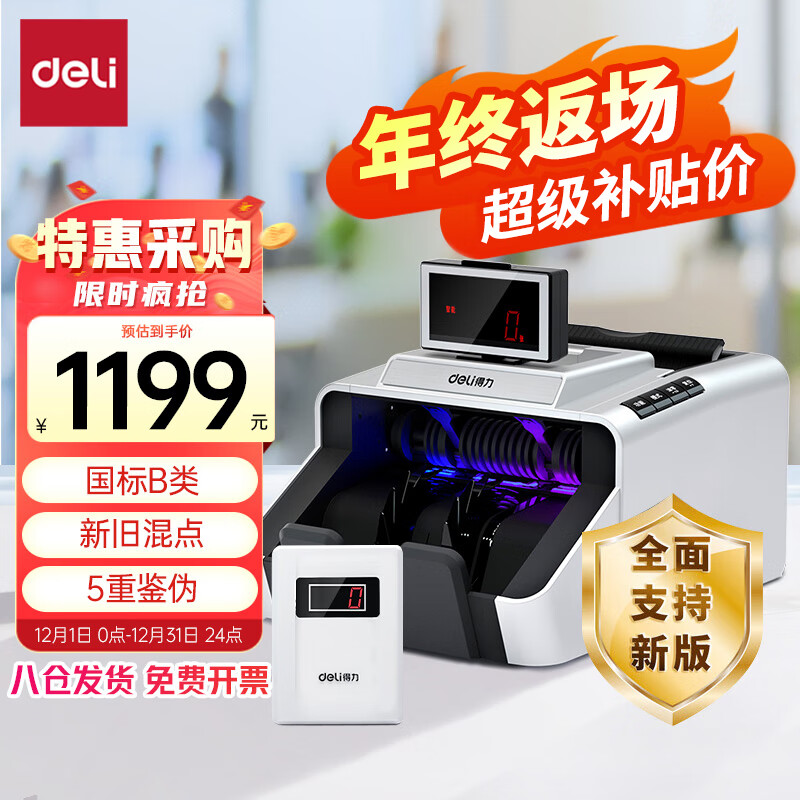 得力(deli)支持新版人民币 高配版验钞点钞机 商用家用数钱机 智能语音收银支付3919S价格:1239.00元!