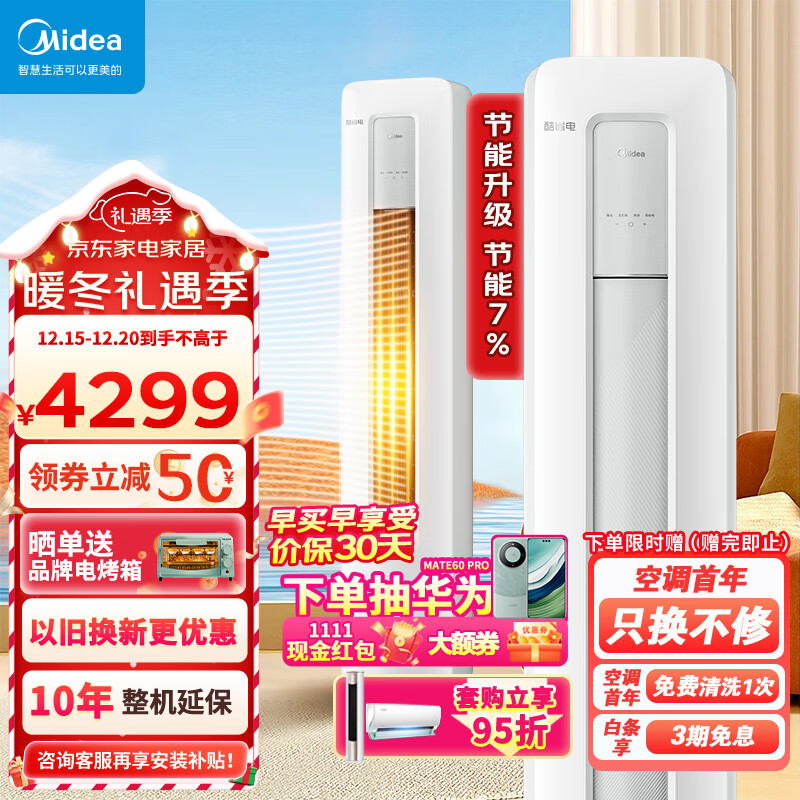 美的(Midea)空调柜机2匹 新能效变频冷暖两用 客厅立式空调WiFi智控 空调柜机以旧换新 酷省电51LW/N8KS1-3价格:4299.00元!
