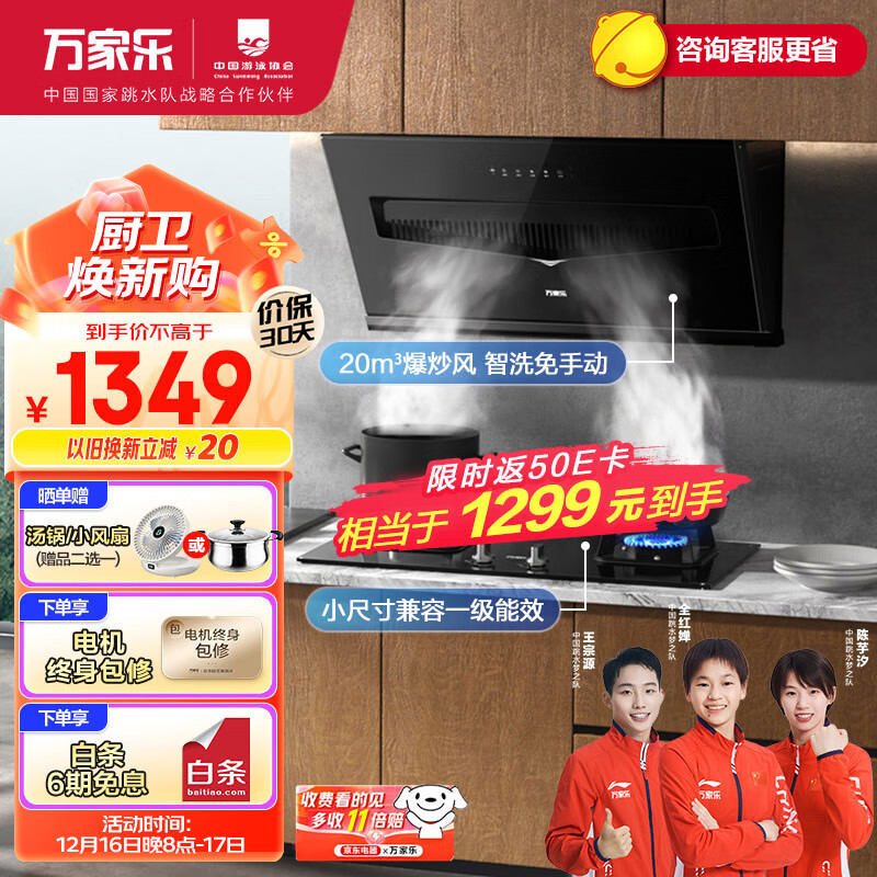 万家乐 抽油烟机 侧吸式烟灶套装20m3/min大吸力挥手自清洗油烟机高温防烫燃气灶套装DAJ3+KA032B液化气价格:1449.00元!