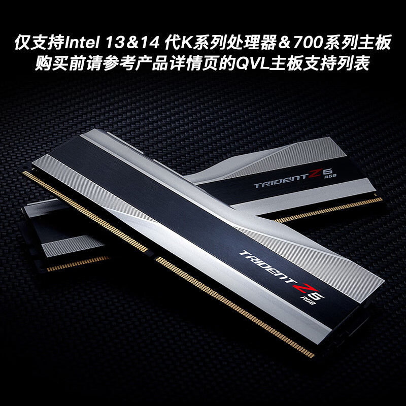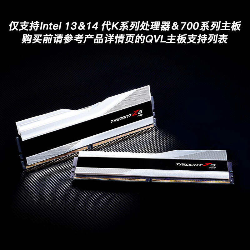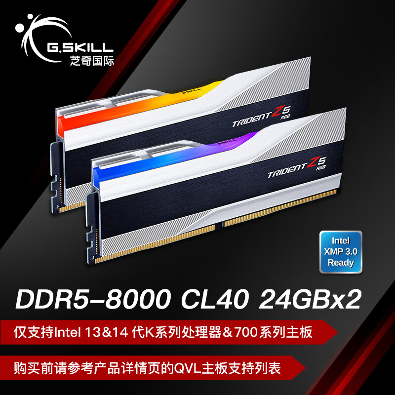 芝奇(G.SKILL)48GB(24Gx2) DDR5 8000 台式机内存条-幻锋戟RGB灯条(科技银)/Intel XMP/C40价格:2888.00元!