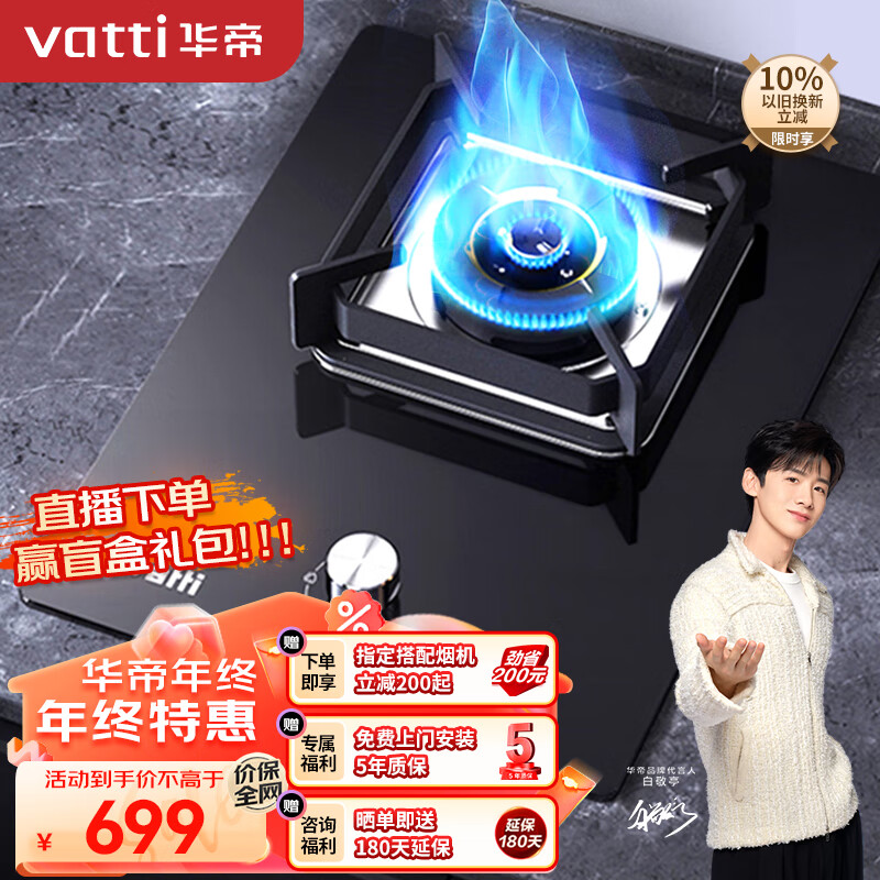 华帝(VATTI)燃气灶液化气家用嵌入式 台嵌两用 单灶头打火灶具 5.0kW可调节底座换灶不改孔 JZY-i10098B价格:699.00元!