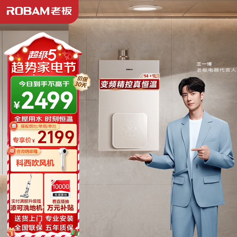 老板(Robam)14+1升燃气热水器天然气 家用智慧防冻智能变频精控恒温 下置变频风机强鼓式HD660A-14价格:2499.00元!