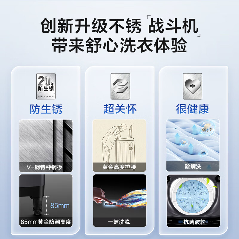 4、外形外观:非常洁白,非常好看,非常不错洗净效果:洗的非常干净,真是非常不错除菌效果:应该不带杀菌功能,我也没用过容量大小:容量非常大,可以洗好几床被,买的第二台,