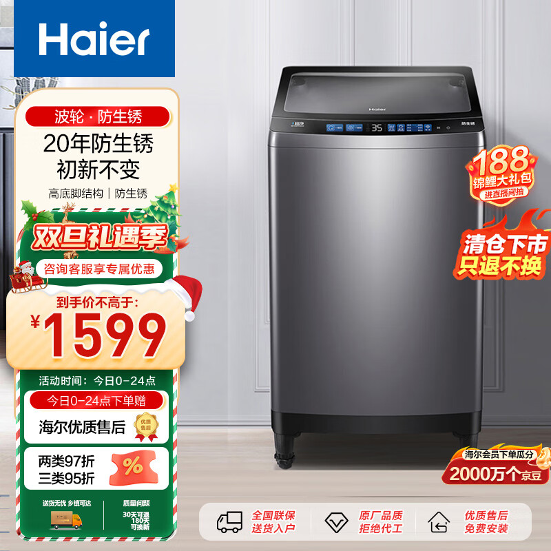 海尔(Haier)波轮洗衣机全自动家电 以旧换新 脱水机 20年防生锈10公斤大容量 V-钢机身EB100Z26Mate3价格:2599.00元!