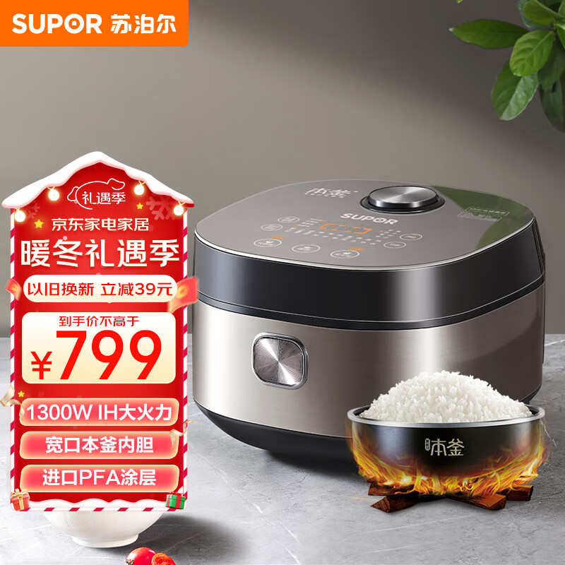 苏泊尔(SUPOR)电饭煲Pro电饭锅4L大容量 IH电磁加热 聚能本釜内胆3-8人多功能家用智能电饭煲SF40HC42价格:919.00元!