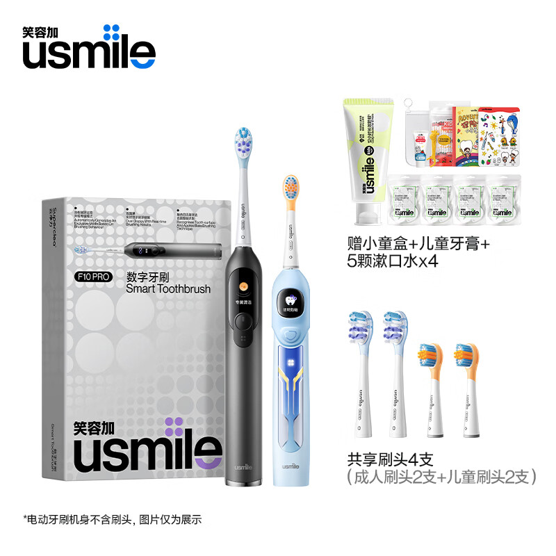 usmile笑容加 亲子套装组合 成人F10PRO黑+儿童S10蓝价格:1118.00元!