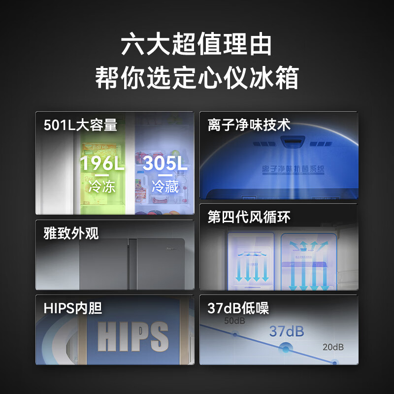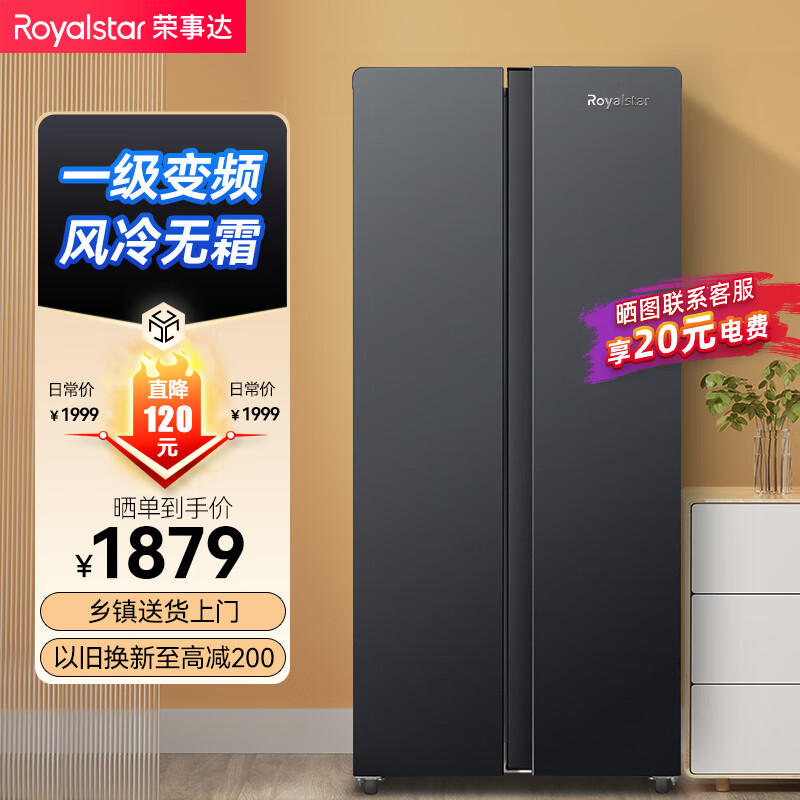 荣事达(Royalstar)501升智能双变频 一级能效 风冷无霜净味养鲜双开门对开门家用电冰箱大容量超薄嵌入R501FSP价格:1899.00元!