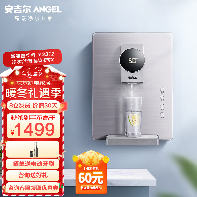 安吉尔管线机家用 壁挂式速热饮水机 即热式开水器 厨房客厅饮水器 多段温控 净水器伴侣Y3312 【升级款】99%客户选择价格:1499.00元!