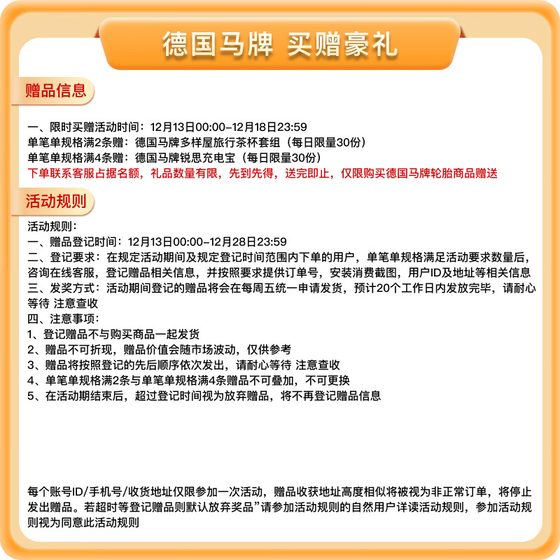 5、汽车轮胎使用年限过长,对经常跑高速的车辆不**全,所以就全部更换了全新的马牌轮胎,京东商城品质有保证,轮胎使用效果很好??