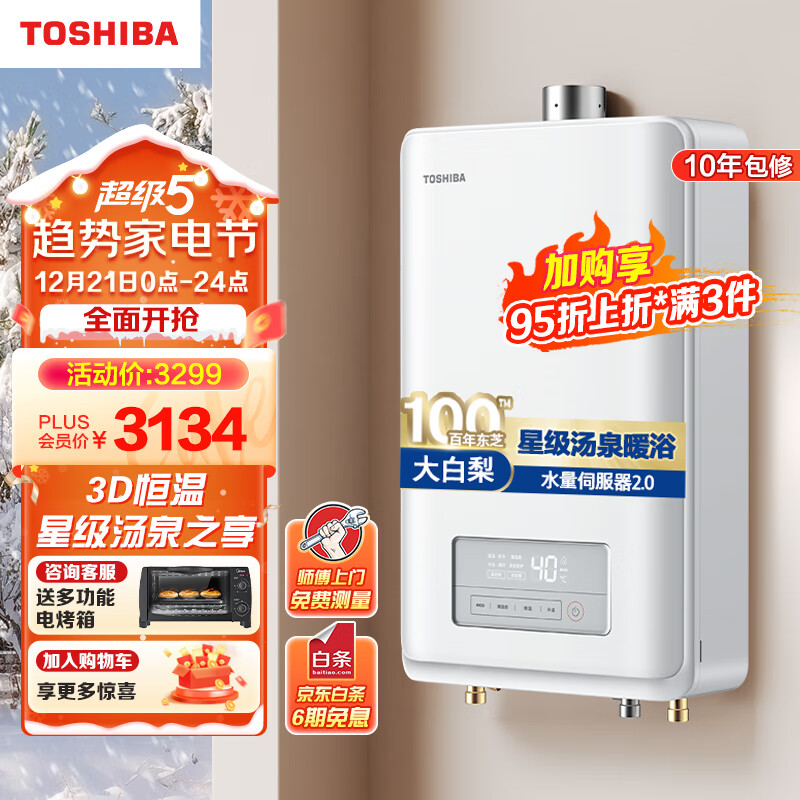 东芝(TOSHIBA)16升燃气热水器 天然气水伺服 3D恒温 进口CPU 下置风机 多重安防 大白梨TL8价格:3299.00元!