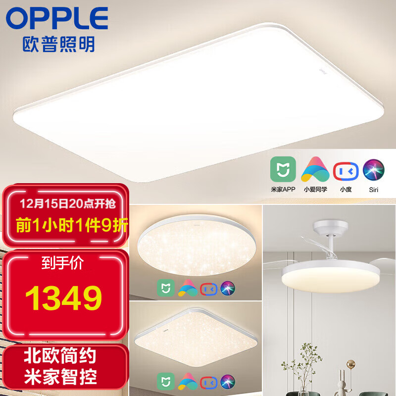 欧普(OPPLE)LED吸顶灯客厅灯时尚超薄客厅卧室灯具灯饰套餐 凝月s白智能10价格:1499.00元!