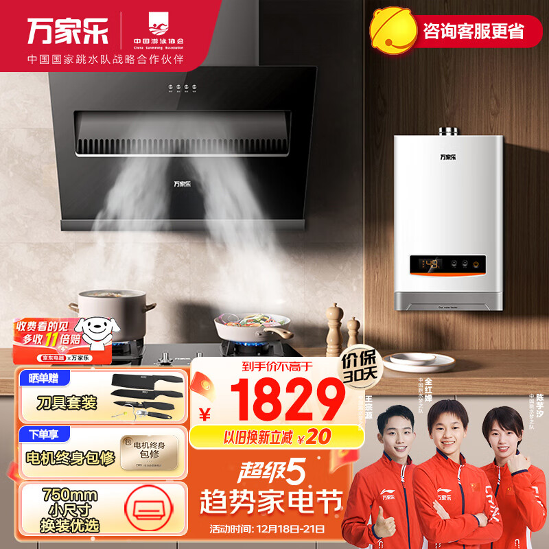 万家乐 抽油烟机 18m3/min侧吸抽油烟机12升智能恒温热水器 烟灶热三件套装AL031+KA031B +12LD13天然气价格:2129.00元!