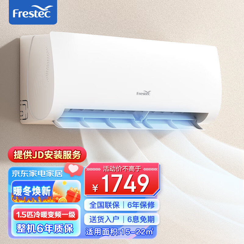 新飞(Frestec)空调 冷暖 新能效 节能省电 快速制冷 自清洁 壁挂挂机 省电挂机能效空调 1.5匹冷暖一级变频【包基础安装】价格:1749.00元!