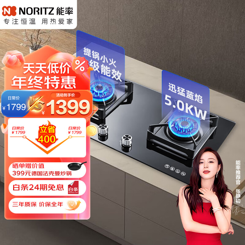 能率(NORITZ)燃气灶天然气灶 台式嵌入式两用 5.0KW猛火灶 家用防干烧 提锅小火 熄火保护钢化玻璃灶台HN182G价格:1399.00元!