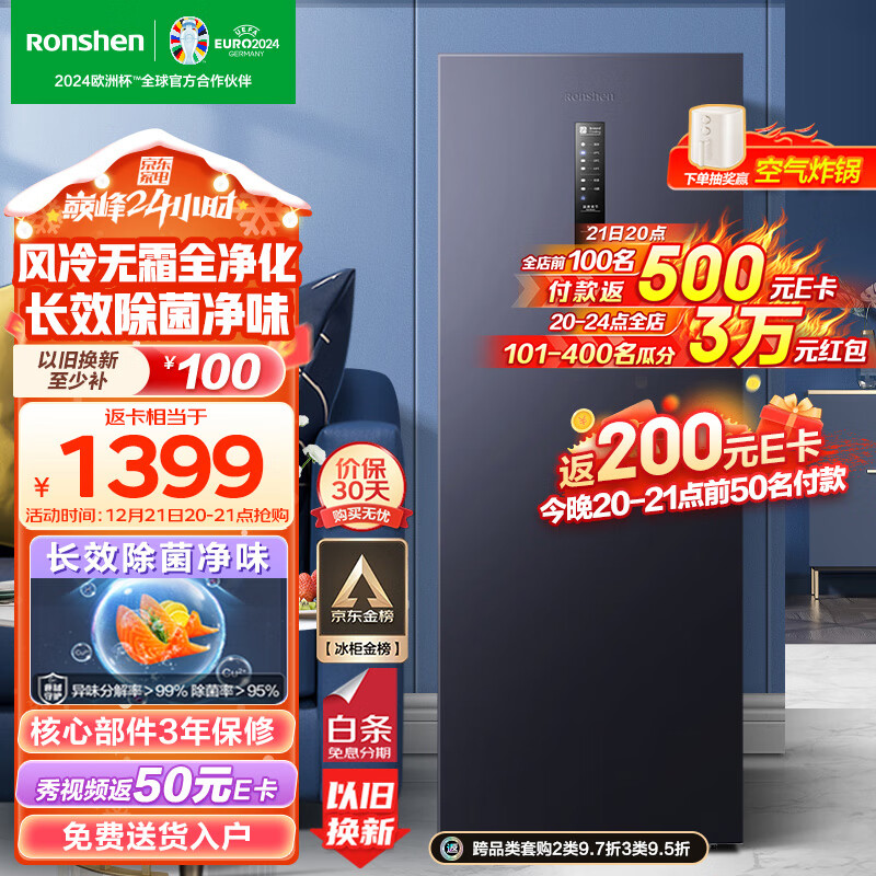 容声(Ronshen) 165升立式冰柜 一级能效风冷无霜除菌净味 母乳冷藏冷冻抽屉式冷柜小冰箱 BD-165WRSY星蕴价格:1899.00元!