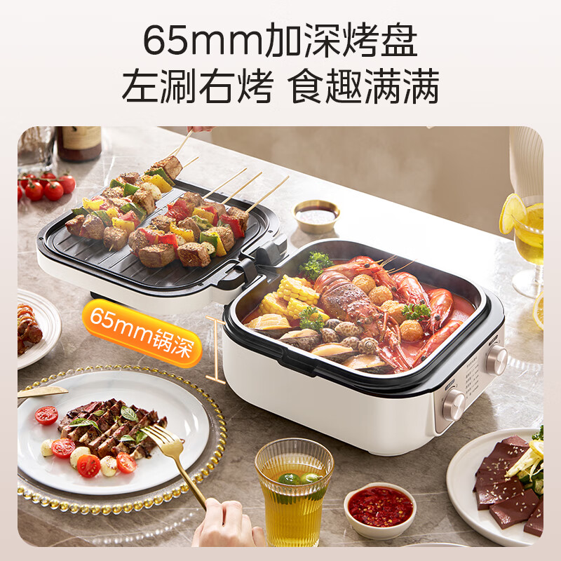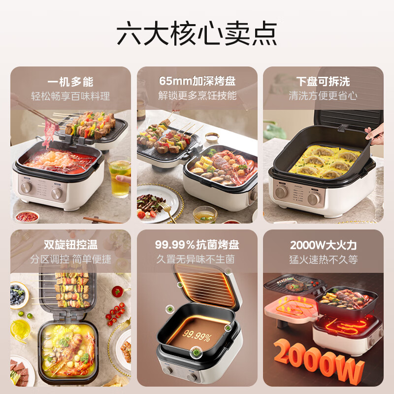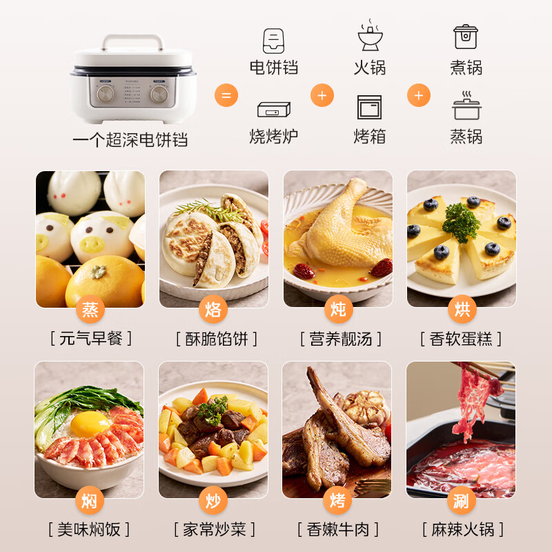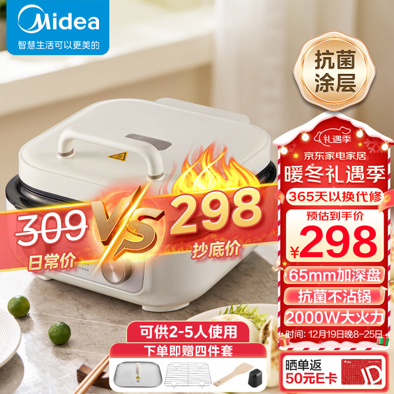 美的电饼档家用智能下盘可拆多用途锅多功能蒸锅3L分体电火锅炒锅 双面加热大火力烙饼煎饼料理锅2626S价格:338.00元!