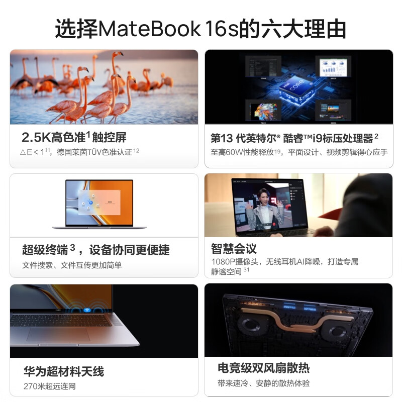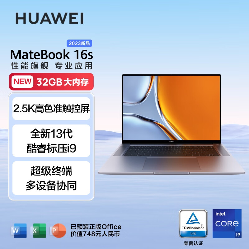 华为笔记本电脑MateBook 16s 2023 13代酷睿版 标压i9 32G 1T 16英寸轻薄本/2.5K触控屏/手机互联 深空灰价格:9699.00元!