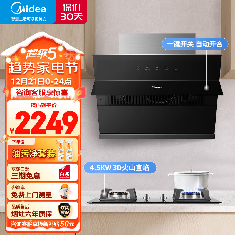 美的(Midea)烟灶套装 小尺寸抽油烟机侧吸式 家用双灶具 小户型油烟机燃气灶套装J27+Q217A液化气价格:2249.00元!