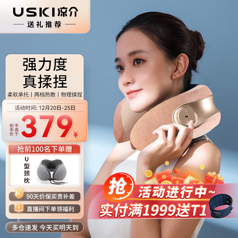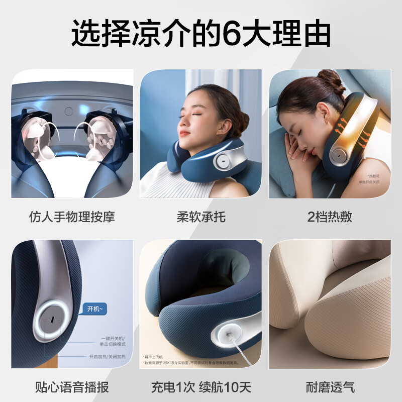 凉介(USKI)颈椎按摩器按摩仪u型按摩枕肩颈仿生揉捏颈部加热按摩器 男女生日礼物 圣诞礼物 年会礼品 MT01贵族藕粉【小牛角物理揉捏】-限量版价格:499.00元!
