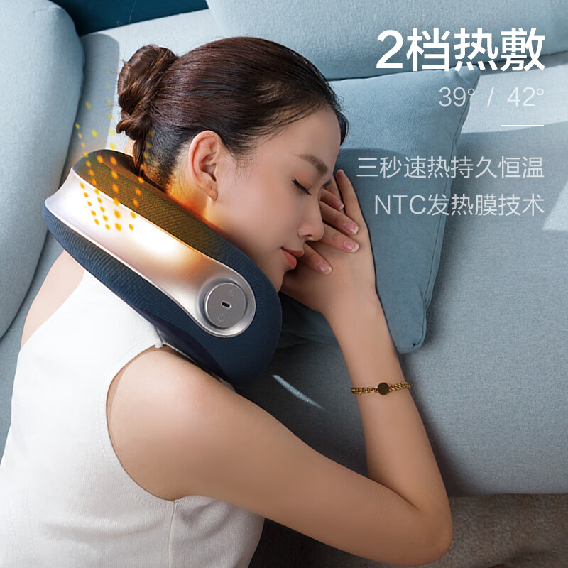4、因为每天玩手机加办公低头时间超过10小时,颈椎经常感到不适,有时候还会头晕,它的力度是可以调节的,比一般按摩力度重一点不会有虚按的情况,用完整个颈椎都松了,超级爽,还有热敷功能,我也很喜欢,暖呼呼的,温度和力度也可以调节。
