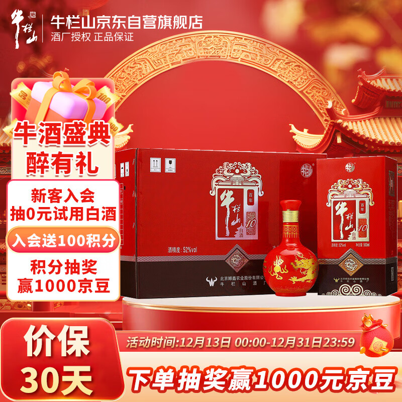 牛栏山 百年红10 浓香型 白酒 52度 500ml*6瓶 整箱装【喜庆用酒】价格:549.00元!