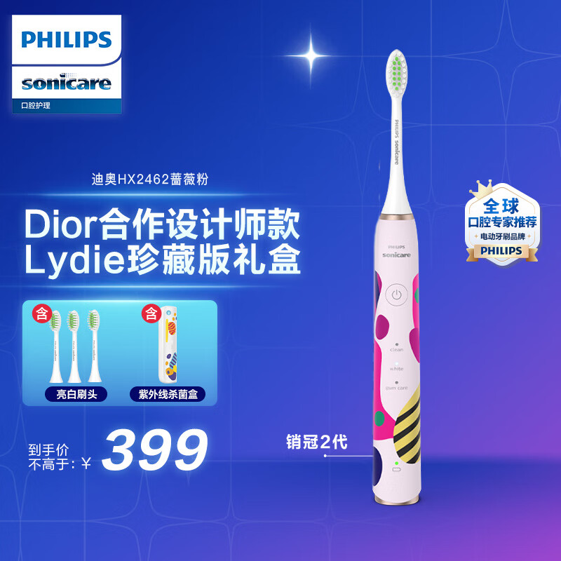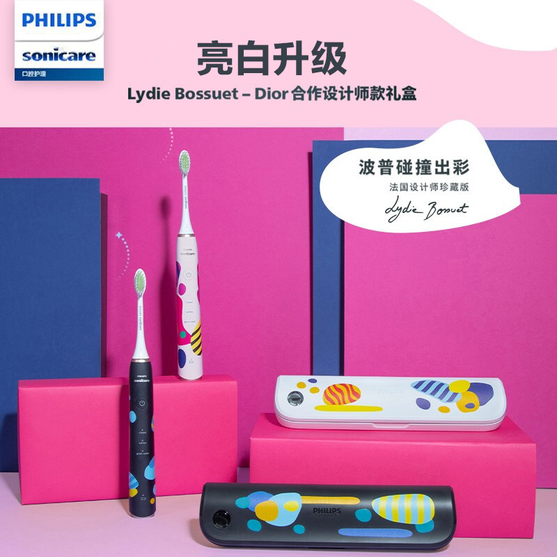 飞利浦(PHILIPS)电动牙刷成人情侣款圣诞新年送女友/男友礼物带3支刷头+杀菌牙刷盒LydieBossuet-Dior合作设计师款价格:439.00元!
