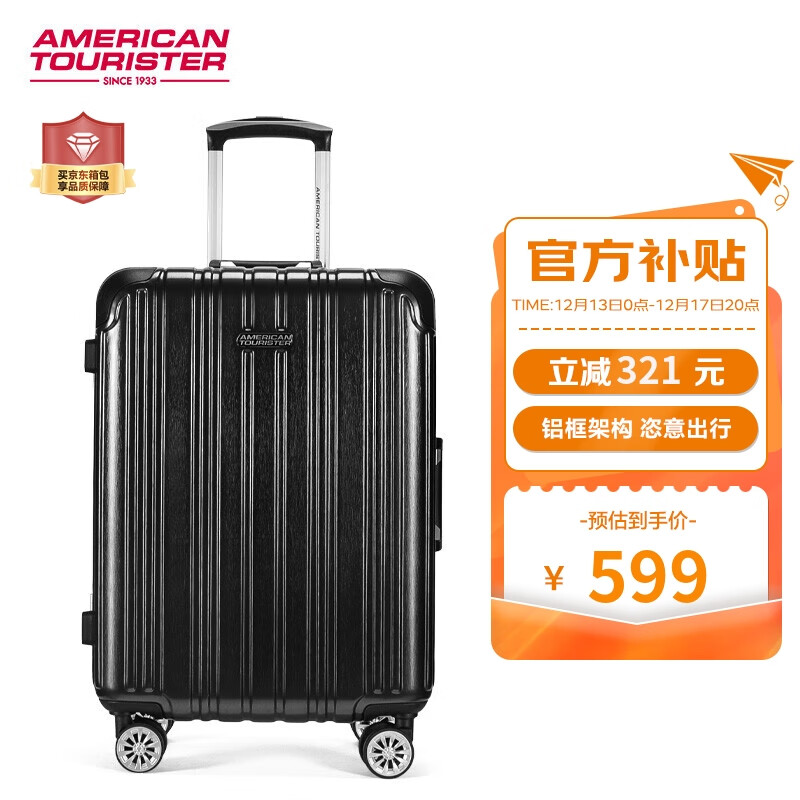 美旅箱包美旅拉杆箱简约时尚男女行李箱超轻万向轮旅行箱22英寸 TV3炭黑色价格:599.00元!