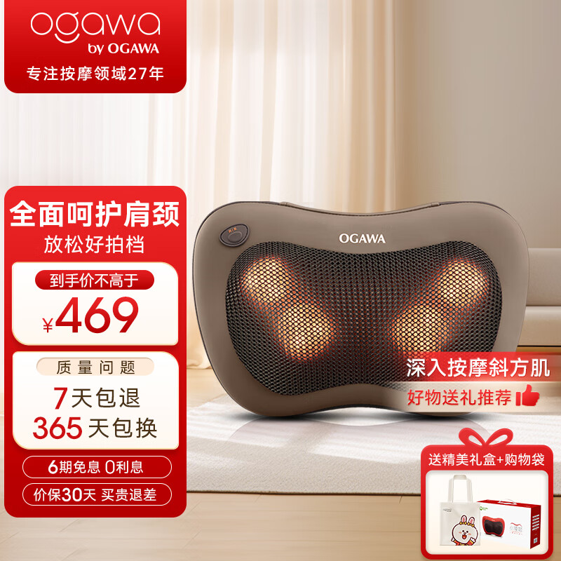 奥佳华(OGAWA)按摩枕颈椎肩颈部腰部按摩仪可全身多功能热敷按摩靠枕家用按摩器小腰姬OG2101节日生日礼物礼盒装 经典版 棕色价格:599.00元!