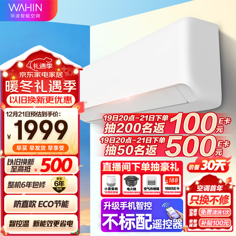 华凌空调 新能效 手机智能遥控 变频冷暖 卧室防直吹 1.5匹 空调挂机 KFR-35GW/N8HA3 以旧换新价格:1999.00元!