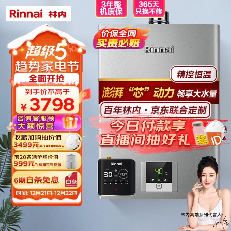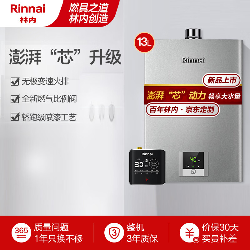 林内(Rinnai)13升燃气热水器 零冷水两件套 澎湃大水量 芯动力系列RUS-13QD31+SG(JSQ26-D31)价格:3798.00元!