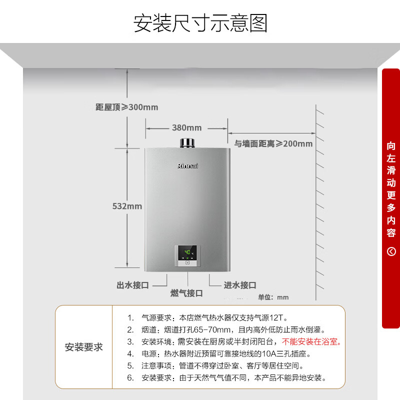 今天要给大家分享的是林内RUS-13QD31外观我比较的喜欢,质量特别的好,林内燃气热水器配送、安装、售后都很负责,颜值很高,这价格带自清洗性价比也不错,跟装修风格很搭,爸妈女友都很满意。热水器的功能比较基础,但是也够用了,希望水温能保持恒定。两个角阀及水管需要自备,但也算好事,可以自己买颜值高的。排烟管稍微延长了两段,收费合理。目前还没有使用,后续体验等以后追加。推荐购买,全五星好评!