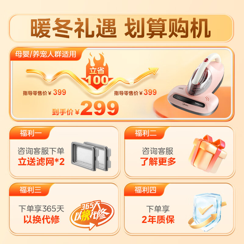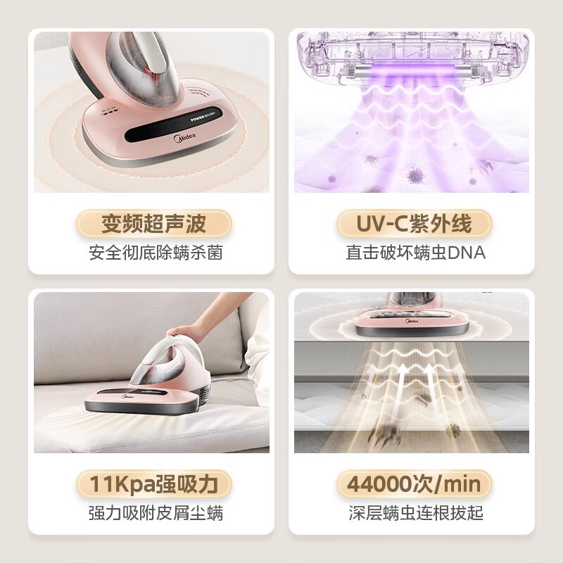 美的(Midea)除螨仪家用 超声波紫外线除螨杀菌 50℃热风除湿 床上手持吸尘 B3pro价格:299.00元!
