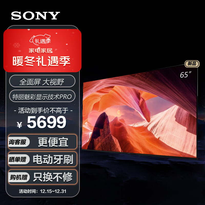 索尼(SONY)KD-65X80L 高色域智能电视 4K HDR 屏设计 黑色价格:5699.00元!