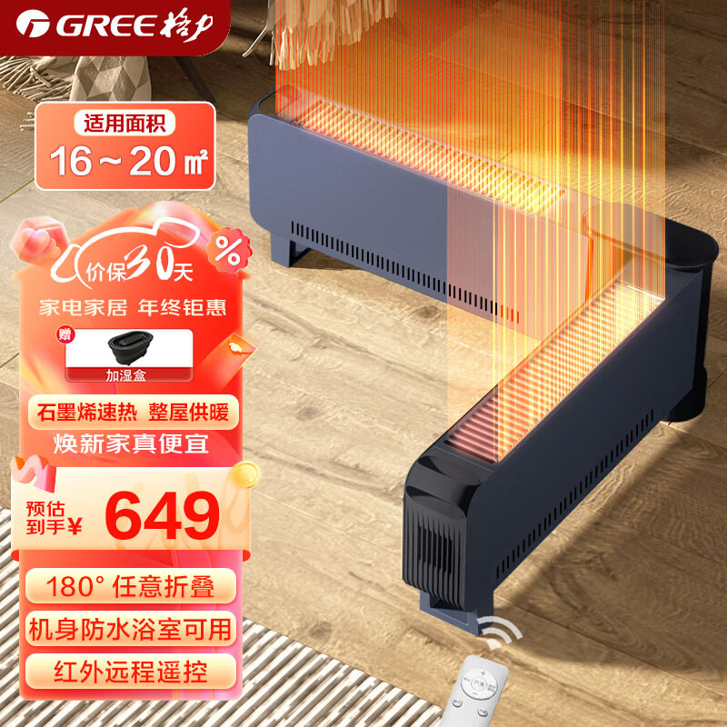 格力(GREE)【石墨烯速热】暖岁系列折叠石墨烯取暖器电暖气家用移动地暖踢脚线 NJE-J6020Bc价格:719.00元!