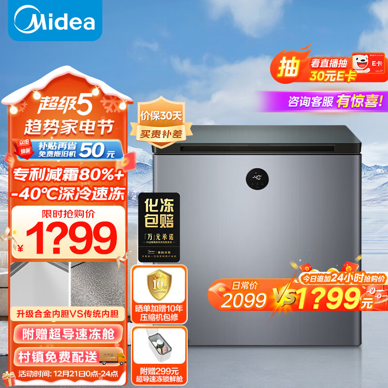 美的(Midea)201升-40℃超低温深冷速冻锁鲜冰柜 电子控温减霜节能家用商用海鲜冷柜 母乳小冰箱 BD/BC-201KEMS价格:1999.00元!