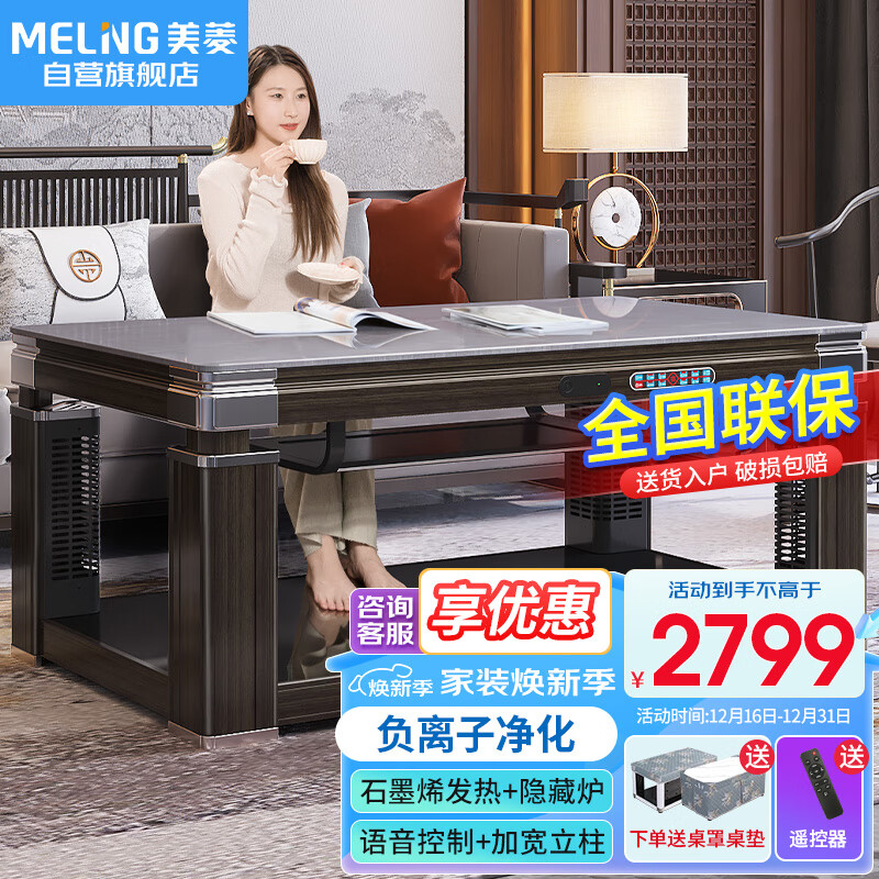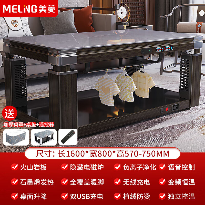 美菱电暖桌1.6米石墨烯发热取暖桌多功能升降烤火茶几语音控制电暖炉家用餐桌长方形烤火桌MDN-DZ1309价格:4248.00元!