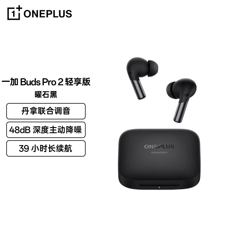 一加 Buds Pro 2 轻享版真无线主动降噪蓝牙耳机 入耳式游戏耳机 通用oppo小米苹果华为手机 曜石黑价格:699.00元!