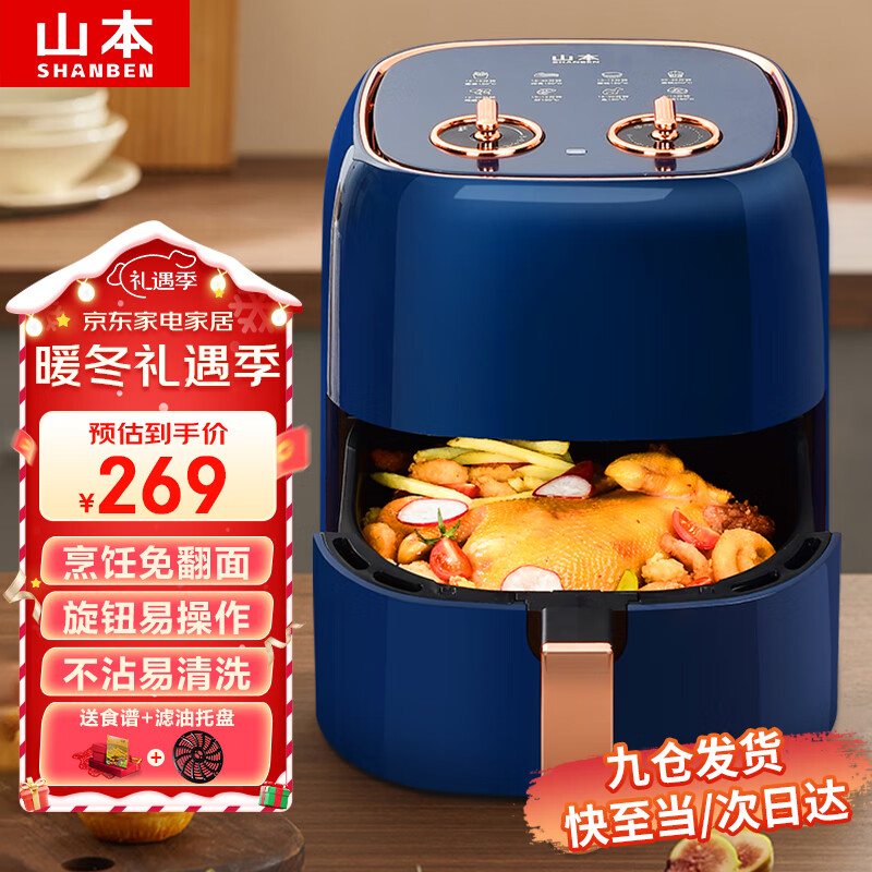 山本(SHANBEN )空气炸锅6L大容量智能家用全自动煎炸锅 多功能无油低脂电炸锅烤箱S-2109价格:269.00元!