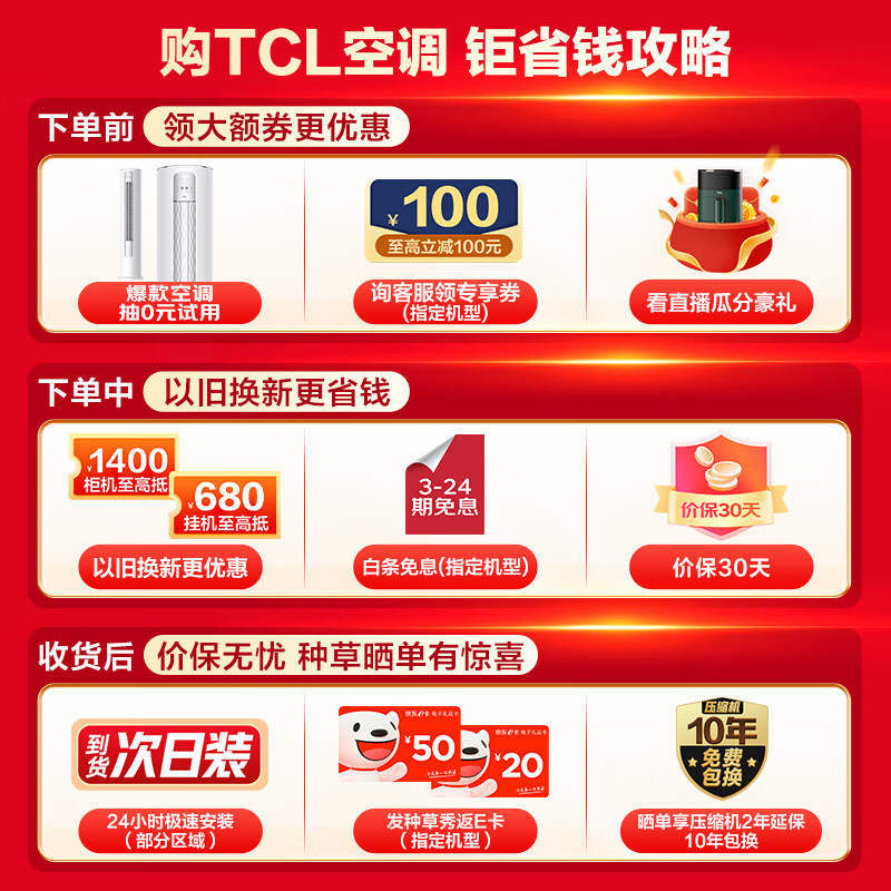 TCL空调 3匹 新二级能效变频节能冷暖智净风除菌客厅空调 立式空调柜机KFR-72LW/JV2Ea+B2以旧换新价格:4399.00元!