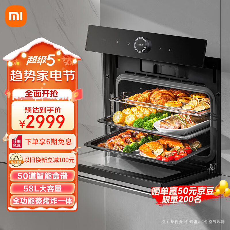 米家小米蒸烤箱一体机 蒸烤空气炸三合一 家用58L大容量嵌入式多功能电蒸箱电烤箱 智能食谱辅助MQR01M价格:2999.00元!
