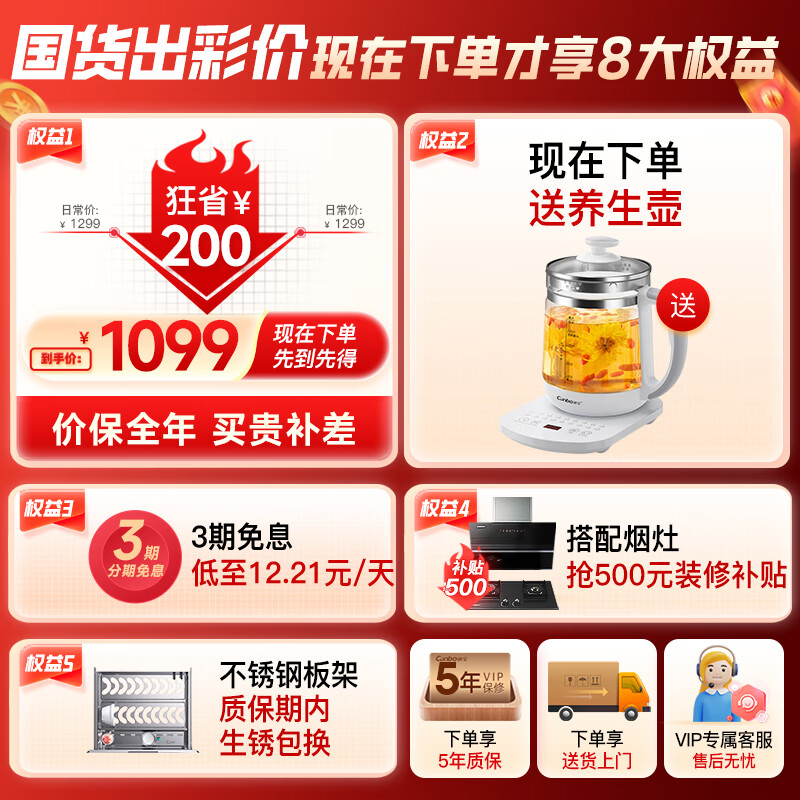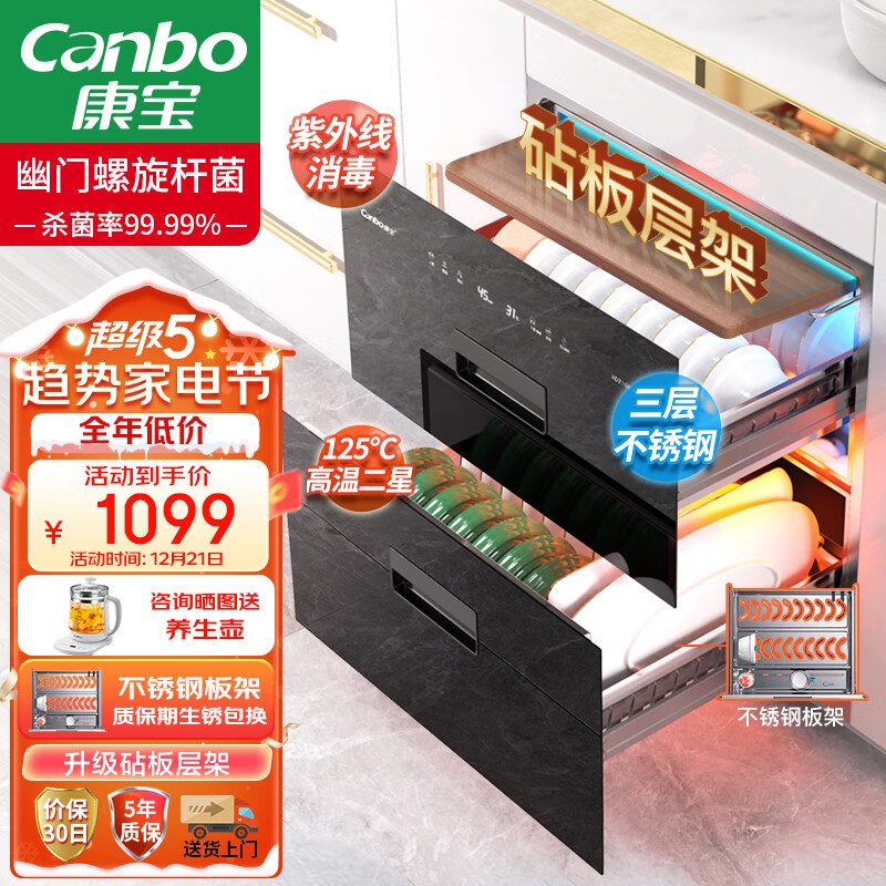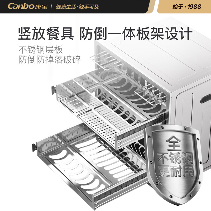 康宝(Canbo)不锈钢 消毒柜 嵌入式 家用 大容量紫外线 消毒碗柜 二星高温小型厨房碗筷餐具大升数XDZ100-EN301价格:1099.00元!