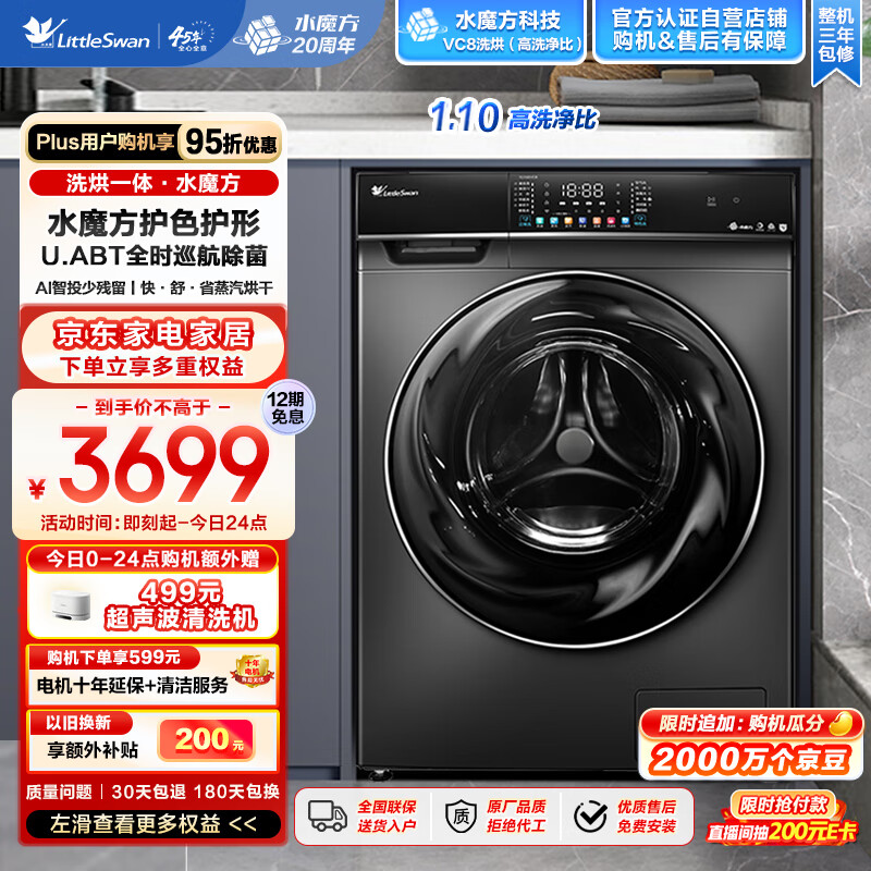 小天鹅(LittleSwan)滚筒洗衣机全自动 水魔方【TD100VC8】洗烘一体 冷水洗 1.1洗净比 超薄10公斤以旧换新价格:3699.00元!
