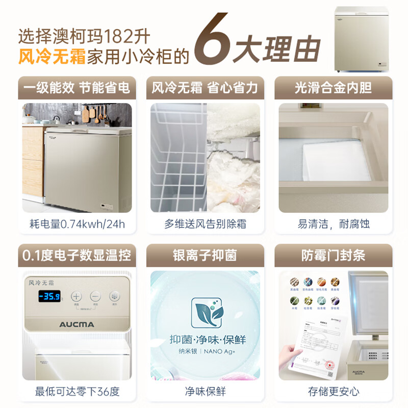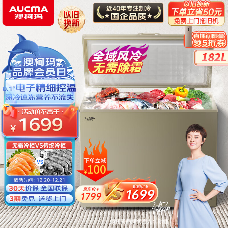 澳柯玛(AUCMA)182升风冷无霜冰柜家用商用单温冷藏柜冷冻柜母乳小冰柜商用小型冷柜冰箱BC/BD-182WD以旧换新价格:1799.00元!