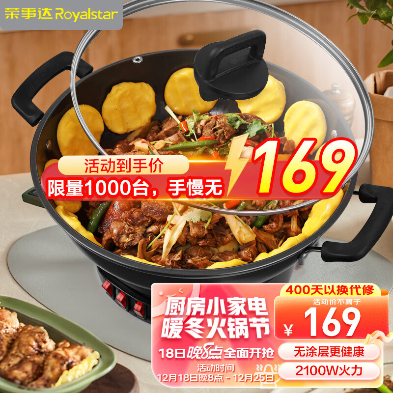 荣事达 电炒锅 家用铸铁多功能电热锅电铸铁锅炒锅多用途锅电锅电煮锅电火锅电蒸锅 RDAF-32价格:169.00元!