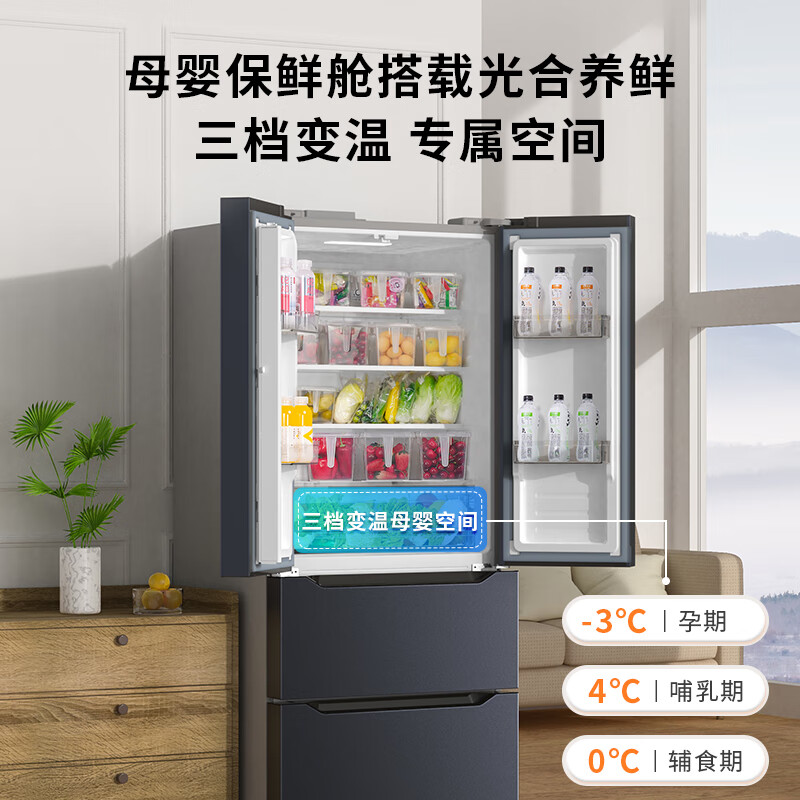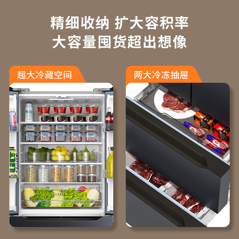 5、冰箱在618搞活动的时候购买的,还没插电使用。应该是没什么问题的。一级能效,419升的冰箱,四开门,使用起来行应该挺不错的。