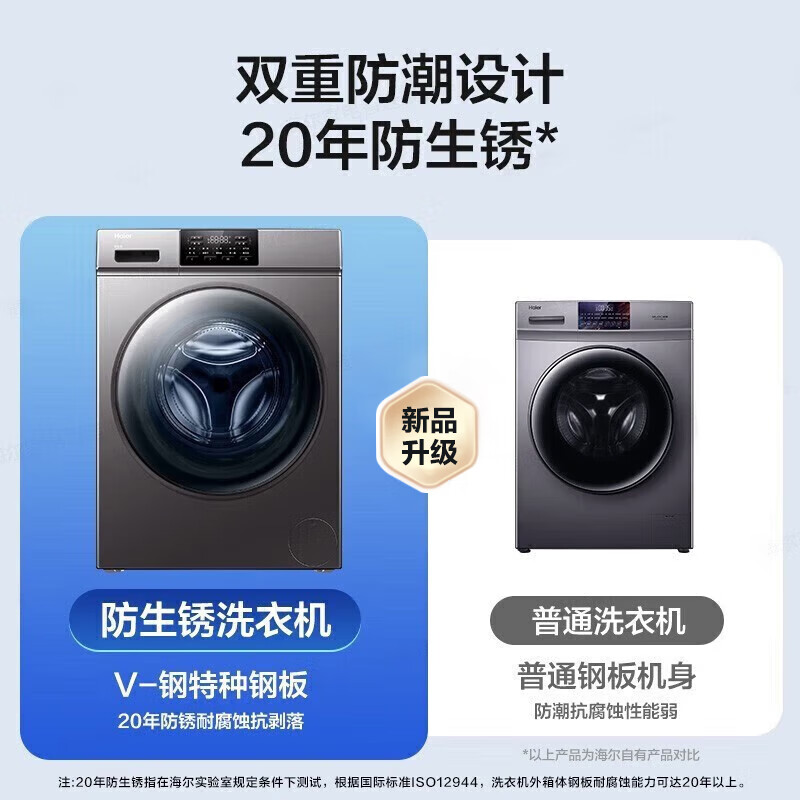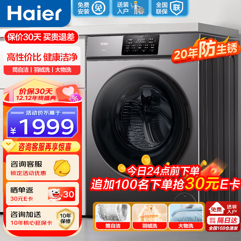 海尔(Haier)10公斤全自动滚筒洗衣机家用一级能效变频全新升级羽绒洗羊毛洗价格:1999.00元!