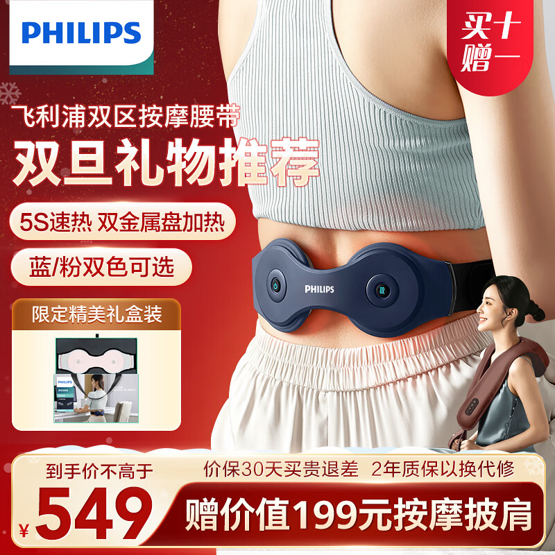 飞利浦(PHILIPS)腰部按摩器 腰椎热敷仪多档振动腰带热敷舒缓腰部按摩仪 3208B蓝 圣诞礼物生日礼物送男女朋友父母价格:629.00元!