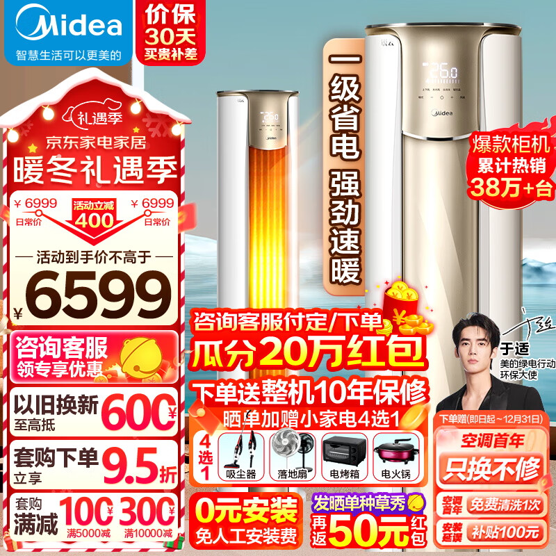 美的(Midea)3匹 锐云 新一级能效 变频冷暖 客厅空调 立式空调柜机 京东小家智能家电 KFR-72LW/N8XHA1价格:6599.00元!