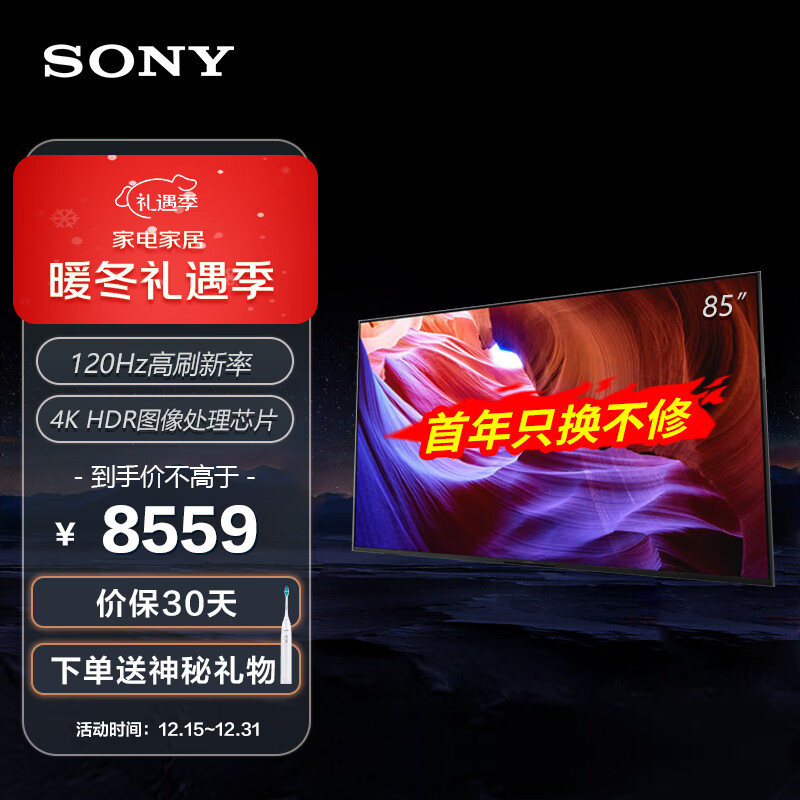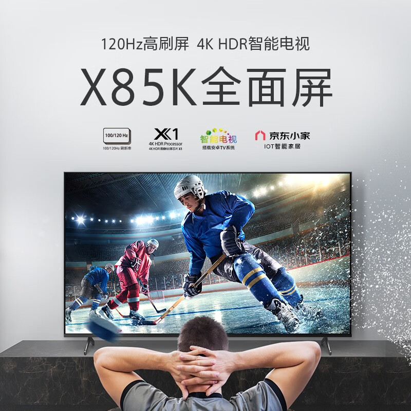 索尼(SONY)KD-85X85K 4K HDR 屏 120Hz高刷 智能电视 黑色 85英寸价格:8559.00元!