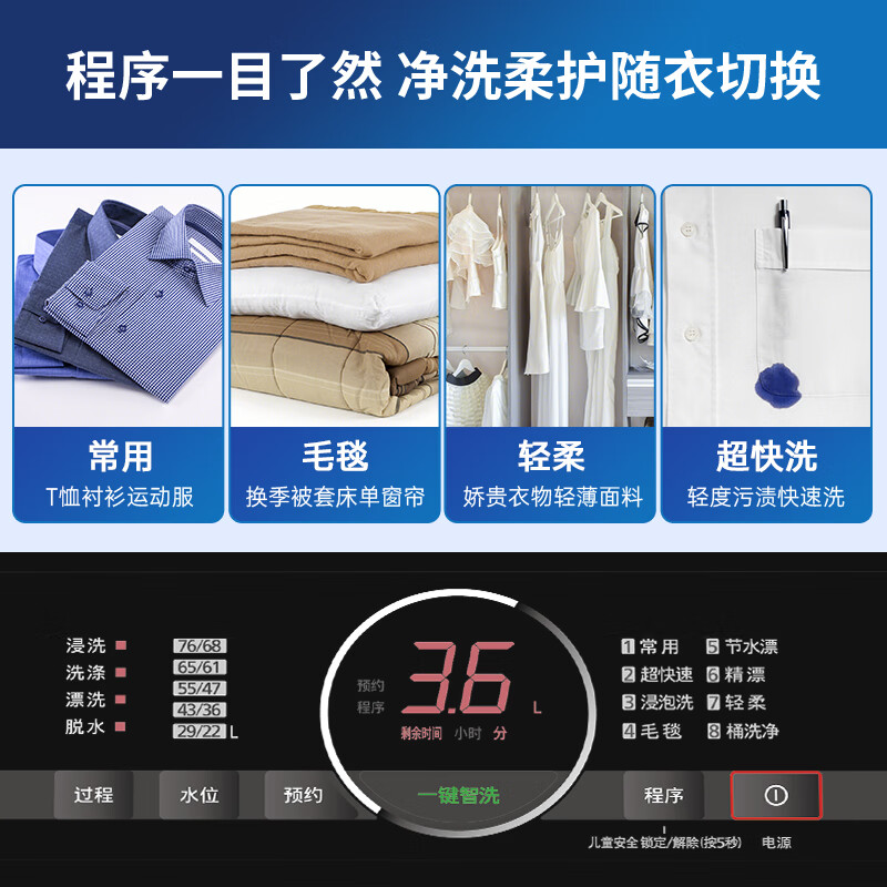 2、产品外形大气,洗衣效果很好,容量很大,功能很多使用很方便一目了然......目前很满意!